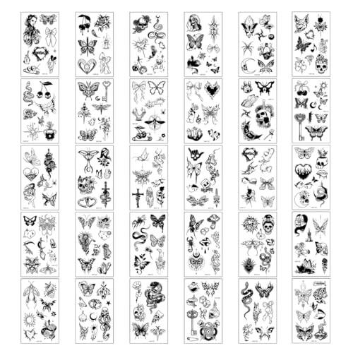 - Lieferumfang: Enthält 30 Blätter mit temporären schwarzen Tattoos, die ideal als Geschenk oder Partyzubehör für Mädchen geeignet sind. Perfekt, um Lieblingsmotive und kreative Designs zu präsentieren